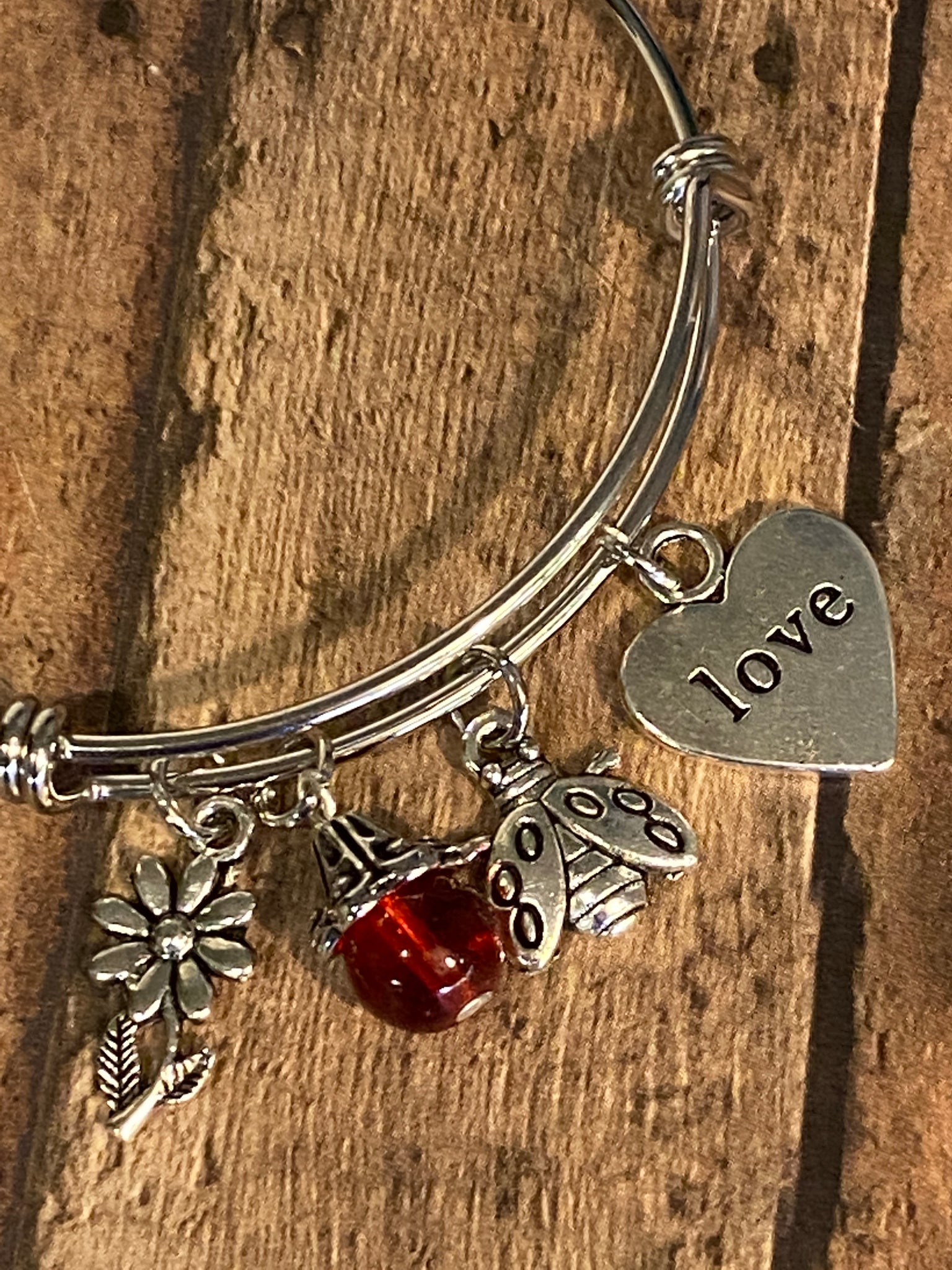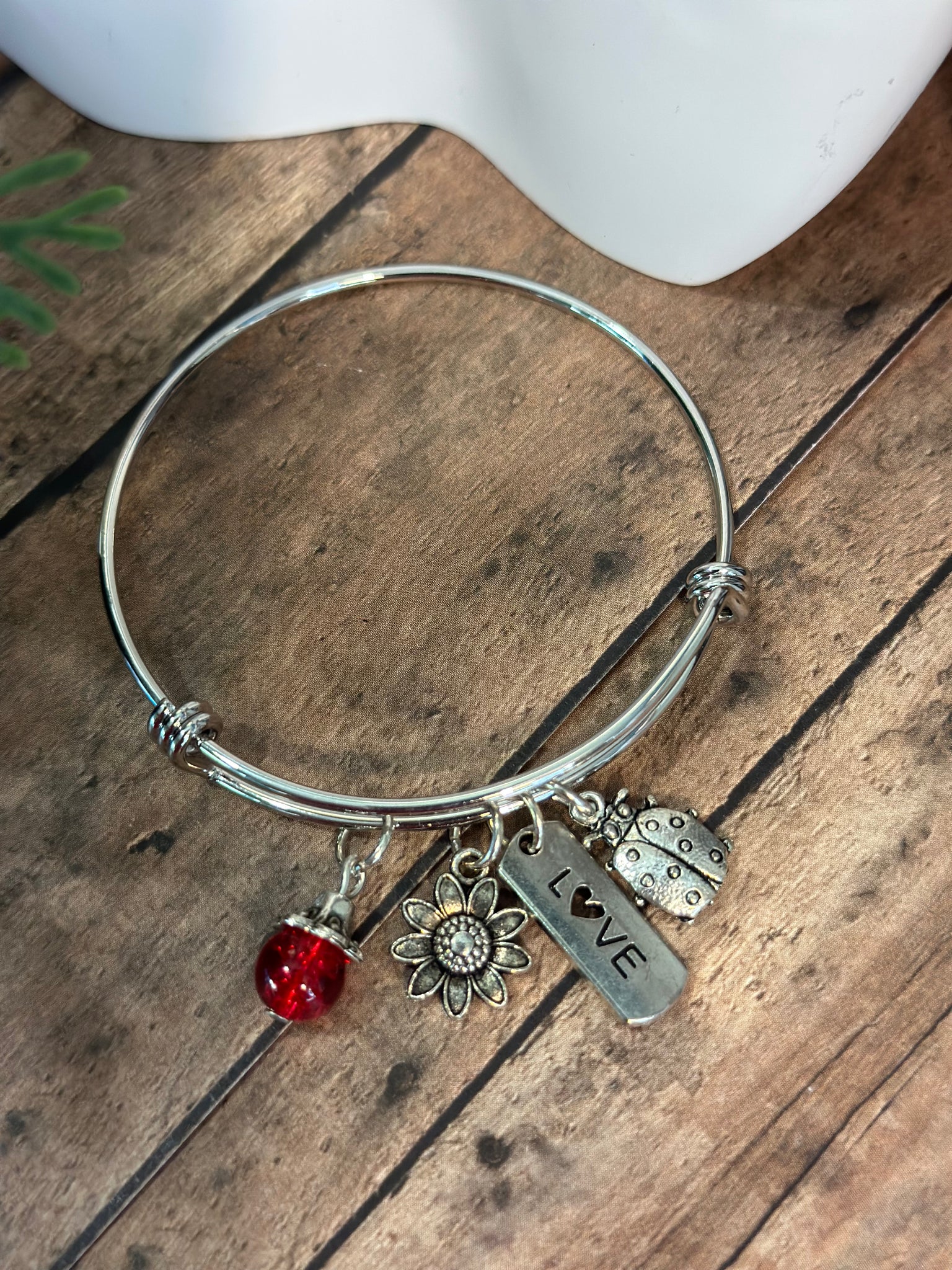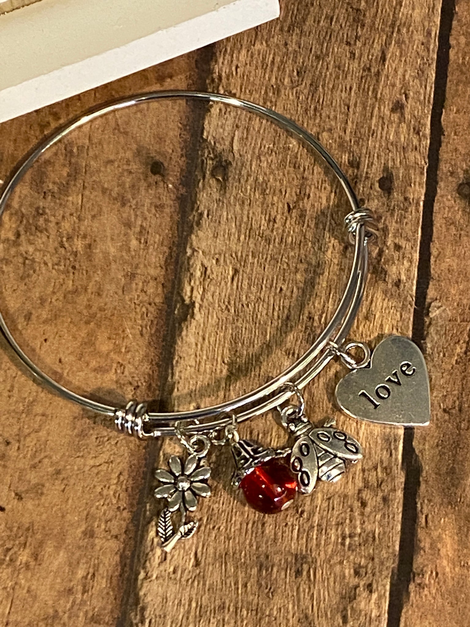 Charm bangles are perfect for stacking and look great worn with beaded bracelets and more. They are unique, tell a story, offer inspiration or express feelings when words just aren’t enough. They are fun, unique, trendy yet sophisticated.
