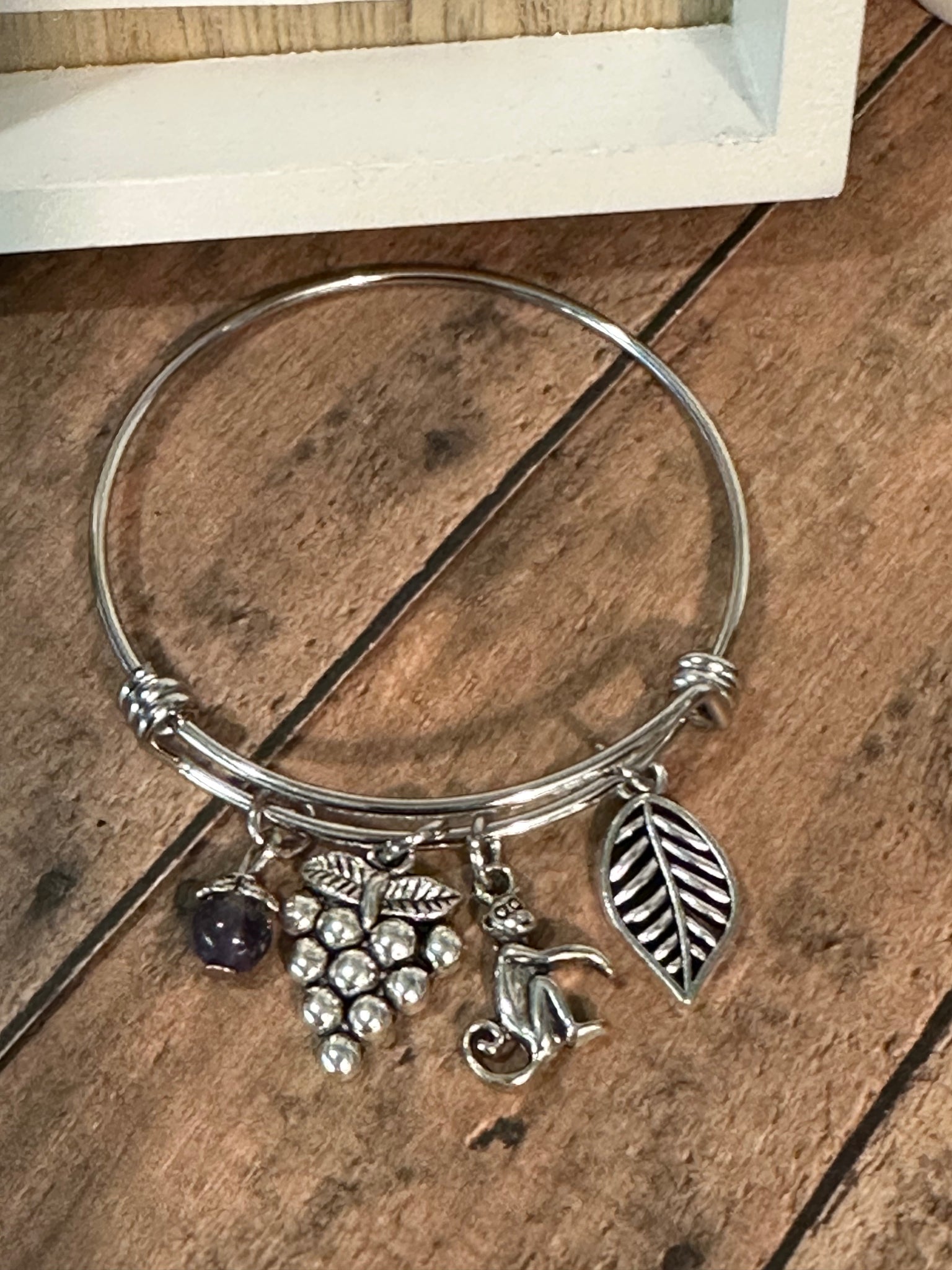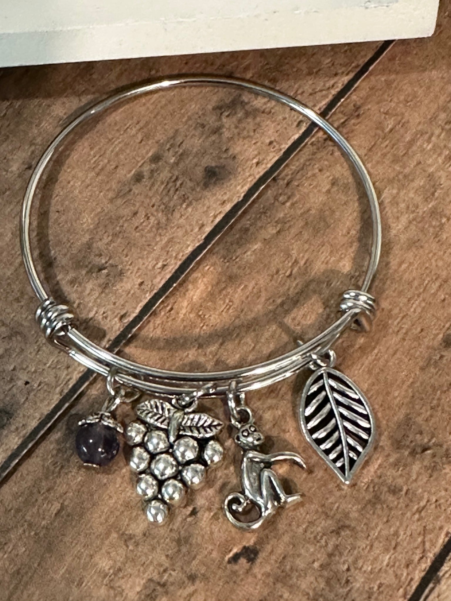 Kids Kollection - Stainless steel bangle with charms and assorted colored beads. Size 50mm.